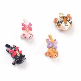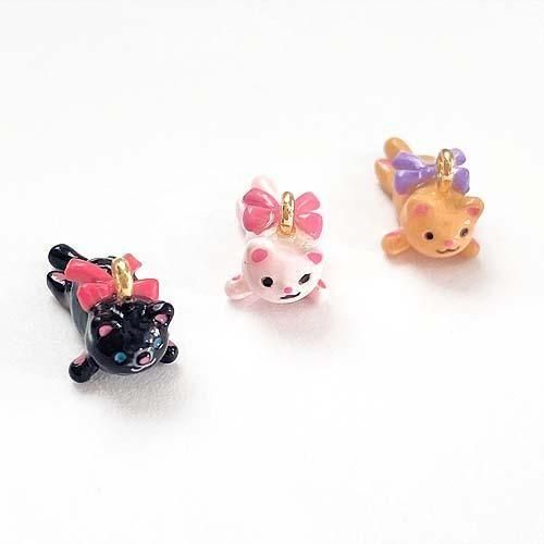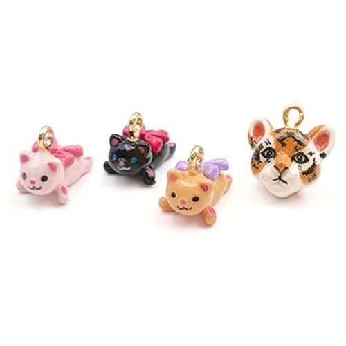 ネコ チャーム アニマル 動物 ねこ 猫 にゃんこ リボン トラ 虎 金属チャーム アクセサリーパーツ 1個 j6-5141 GreenRoseYumi